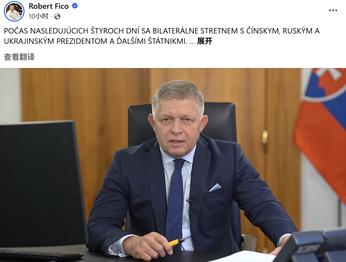 菲佐在视频中还透露,从北京返程后,他将于周四晚间前往斯洛伐克东部地区,并于周五(5日)与乌克兰总统泽连斯基举行双边会谈。