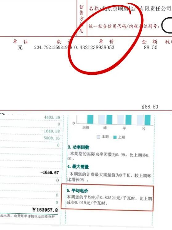 上图为业主缴纳电费单价,下图为物业购电平均电价/镇政府提供